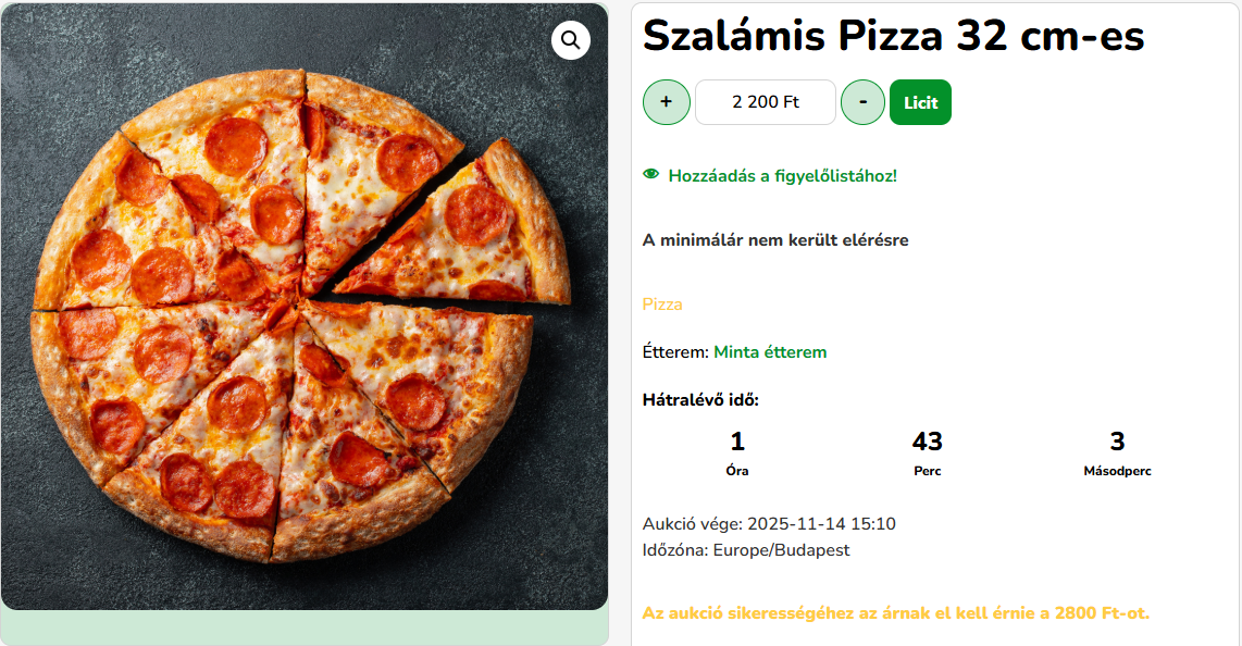 Ha a licit végén a te ajánlatod a legmagasabb, megnyered az ételt, és kedvező áron ehetsz jót, miközben átélheted a licit izgalmát.